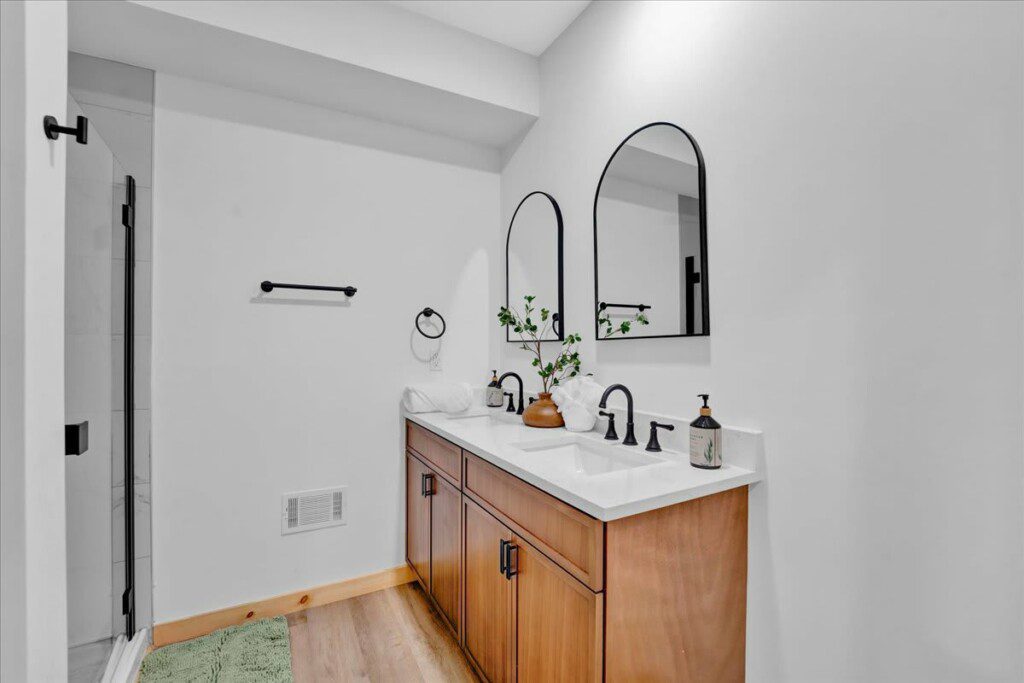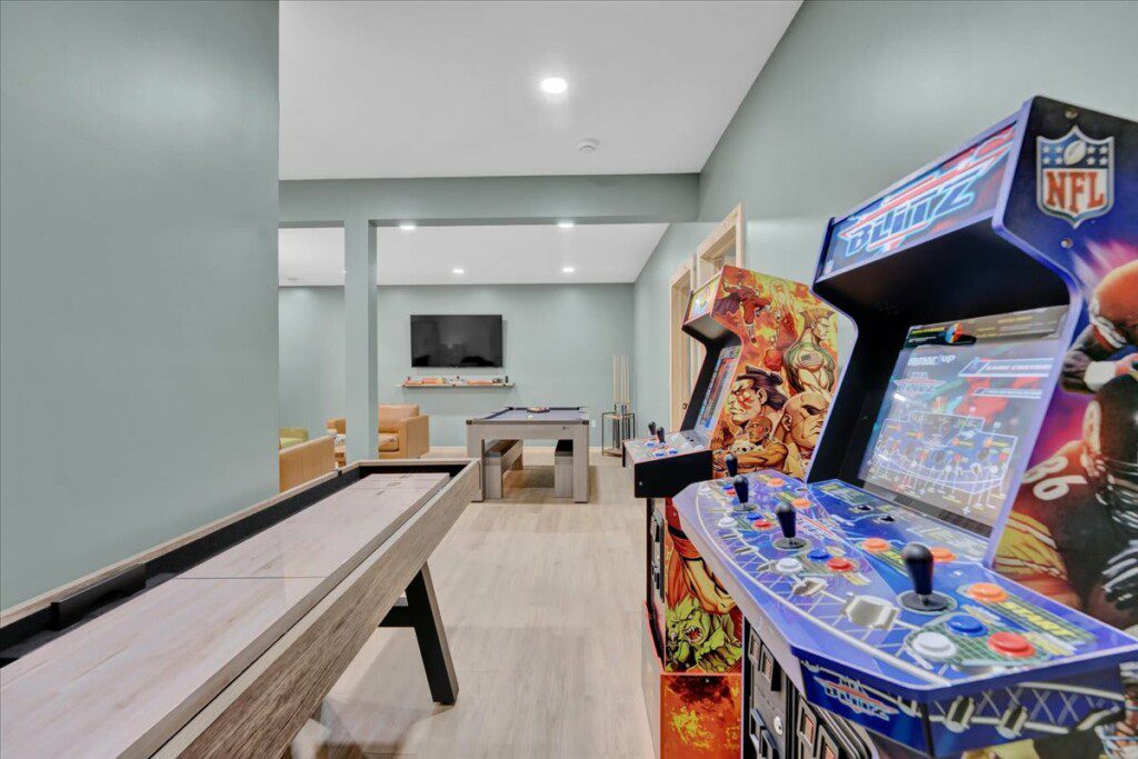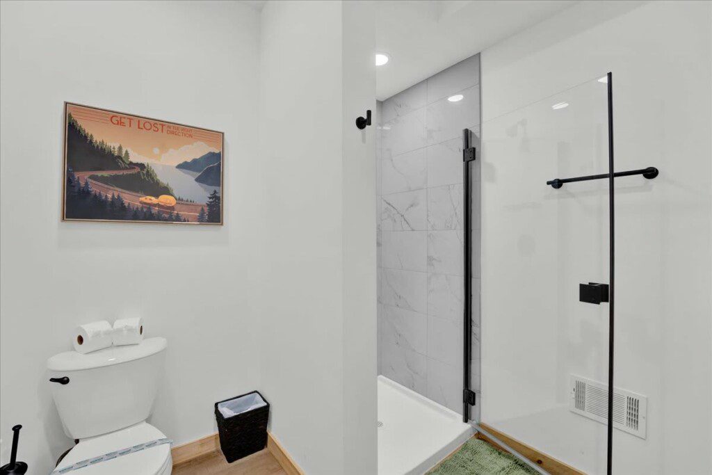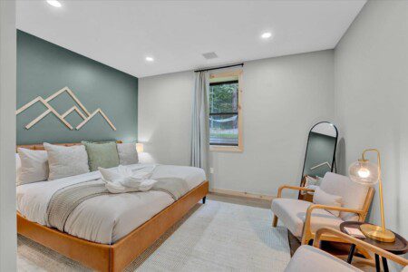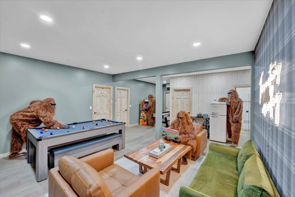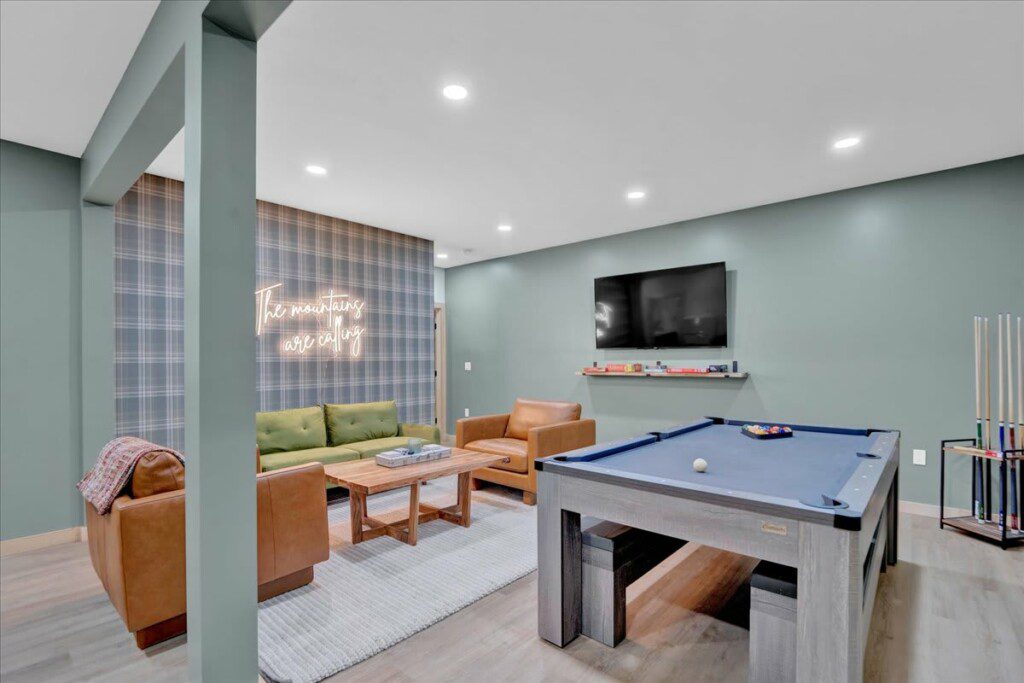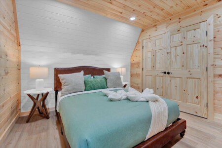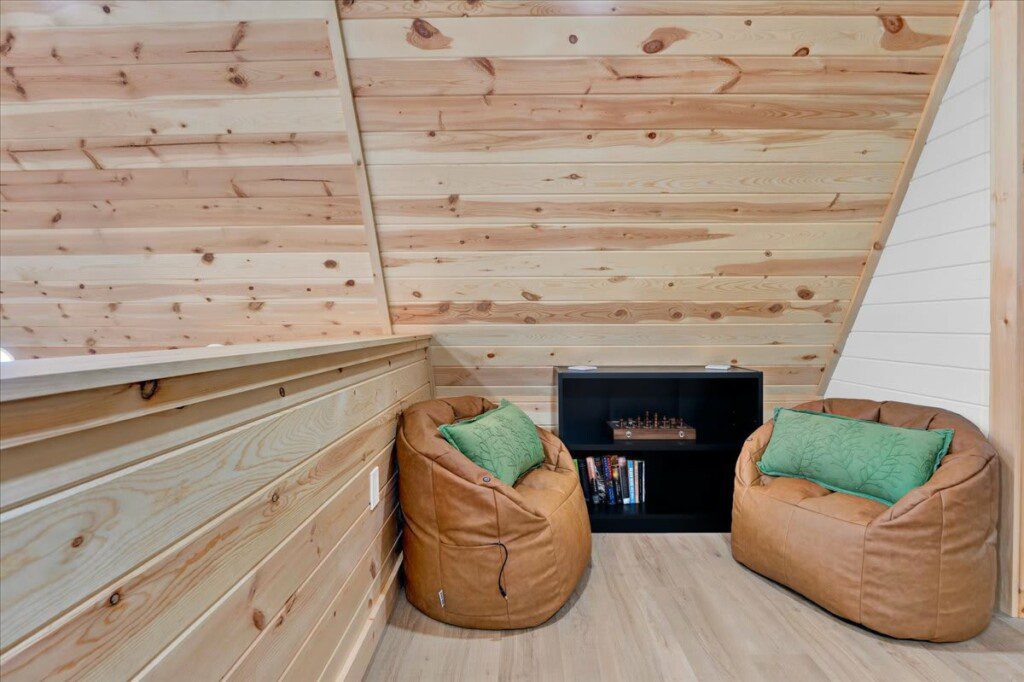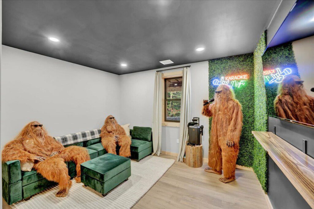 This expansive 7-bedroom home accommodates 16 guests and features stunning vaulted pine ceilings, an open-concept living space, and a fully equipped kitchen. On the main floor, you’ll find bedrooms with forest views and an upper loft with surprise hammock. The lower level offers a stylish karaoke room, arcade games, and additional bedrooms. Outside gather around the massive firepit, or enjoy the deck with a BBQ. Lake access is just a few minute walk or lightspeed drive away. Modern conveniences include smart TVs, a coffee station, record station with a wonderful selection, and high-speed Wi-Fi.