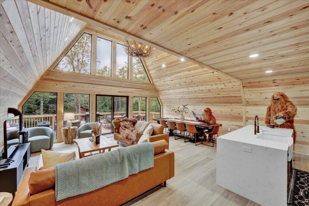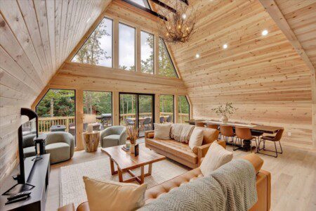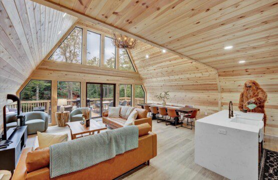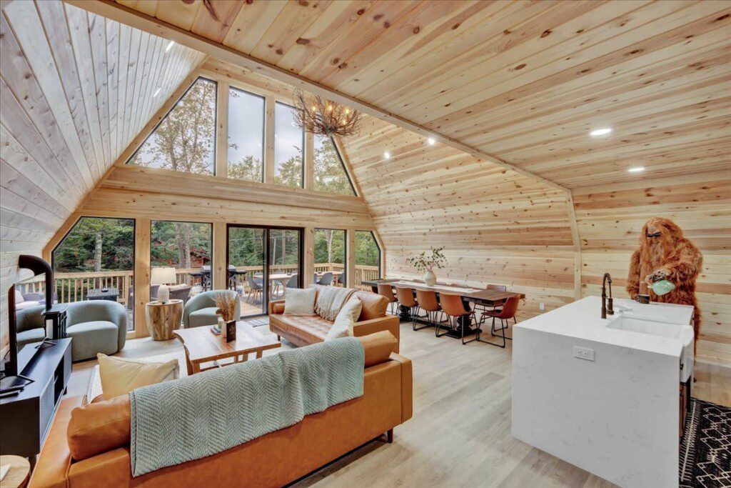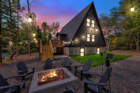 Welcome to the Apex A Frame, easily one of the best experience options in the Pocono Mountains – a contemporary A-frame cabin with lake access! Experience the tranquil charm of the Poconos as you stay in elegance. Central to all Pocono activities, hikes, slopes, and adventure. Set amid towering trees and short walk to the beachy lake, the A frame cabin was meticulously designed to ensure your trip to the Poconos will be the Apex of your year.