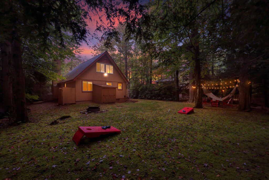 This cabin is nestled in Lake Naomi in Pocono Pines! A great centralized area close to main attractions like Kalahari Resorts and camelback mountain – there are tons of local hiking and bike riding trails as well only minutes away!