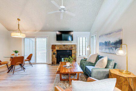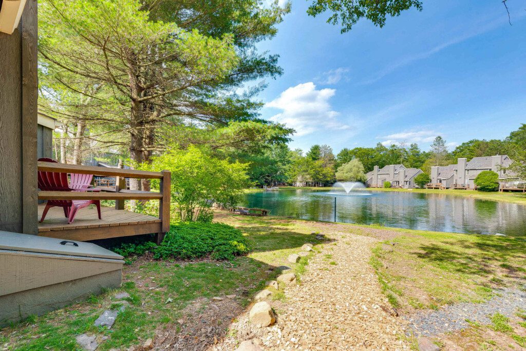 Escape to Jack Frost in the Poconos. This updated 2-bedroom, 1.5-bath townhome sleeps 6 and sits right next to the slopes and golf course.
