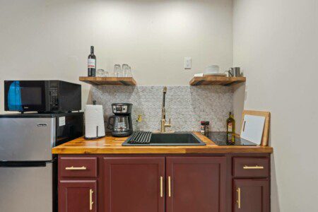 The brand new kitchenette is well appointed with a deep sink and plenty of space to prepare a meal