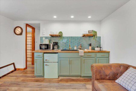 The brand new kitchenette is well appointed with a deep sink and plenty of space to prepare a meal