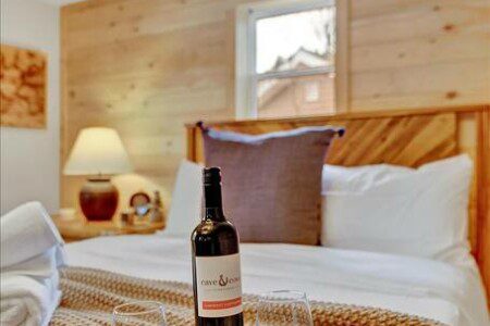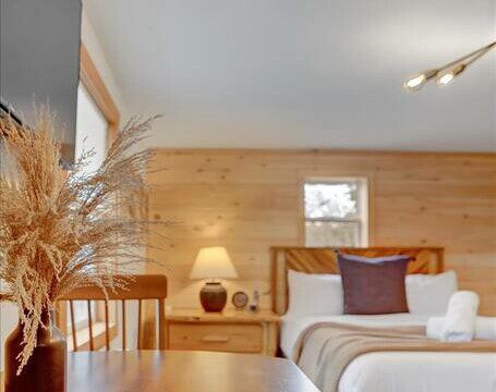 Have a relaxing stay in this charming cabin with modern amenities and tasteful décor, perfect to nestle up in on a snowy day as you watch the flakes fall gentle onto the pine trees around you.