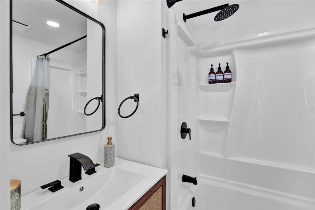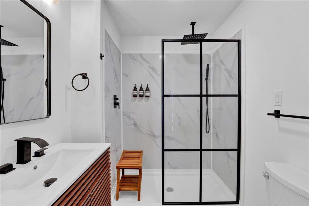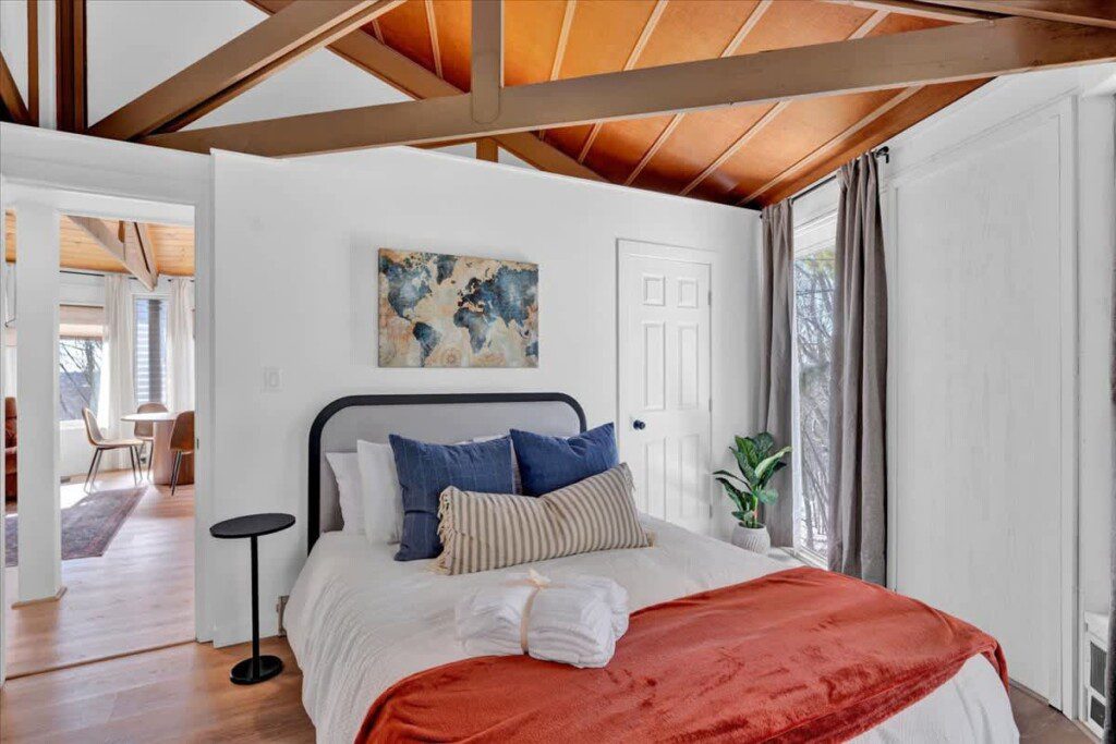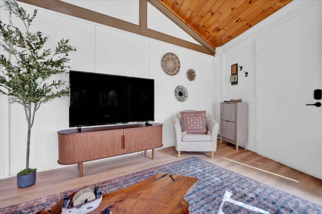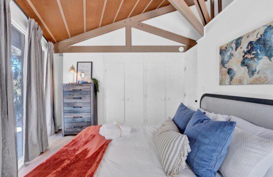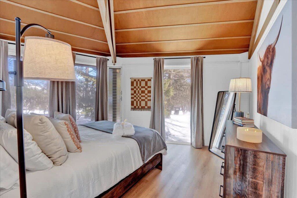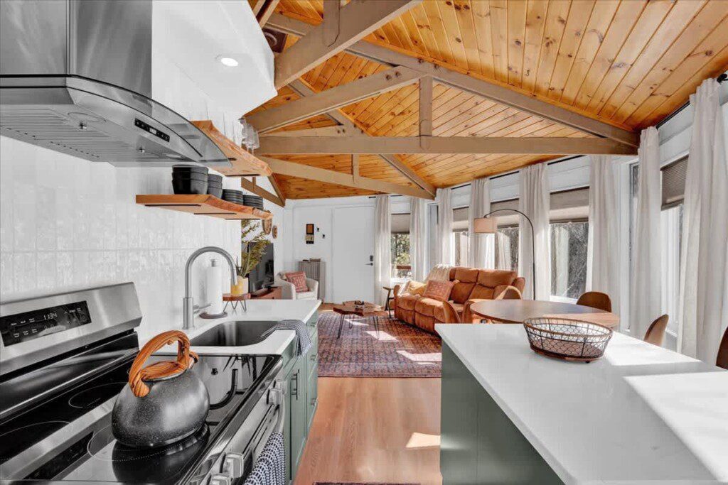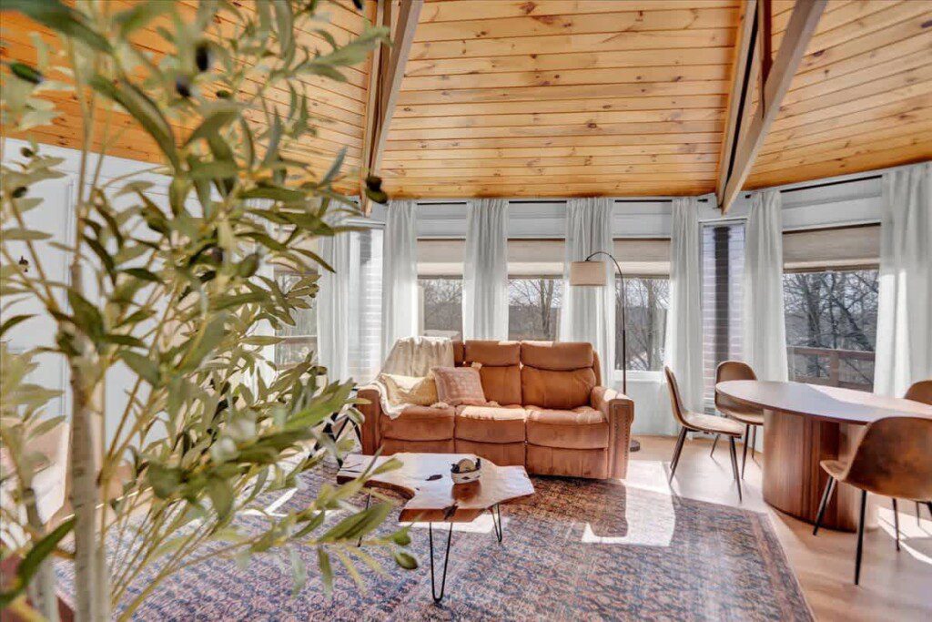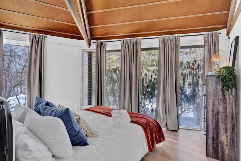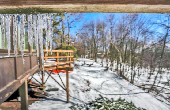 As you step up the stairs, you’re welcomed into a warm and inviting living room, where expansive windows frame breathtaking views of the surrounding treetops. It’s the perfect spot to relax, whether you’re hanging out indoors or watching the snow gently fall outside. The newly renovated kitchen, with its elegant quartz countertops, offers both style and functionality for some cozy home cooking. Each bedroom is a peaceful retreat, featuring stylish atmospheres and panoramic views of the scenic Poconos. Both bathrooms are sleek and modern, providing a luxurious touch to this beautiful unique home.