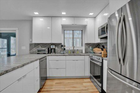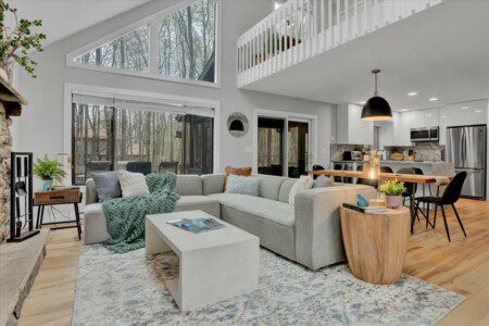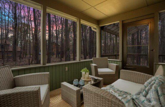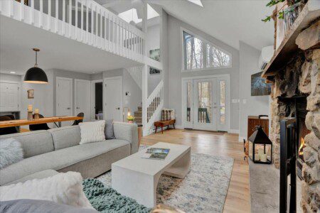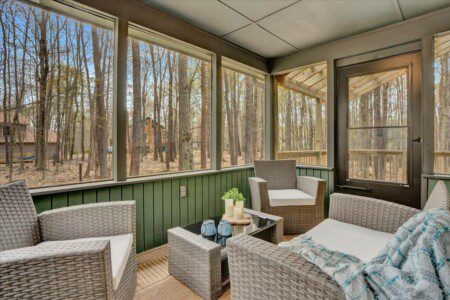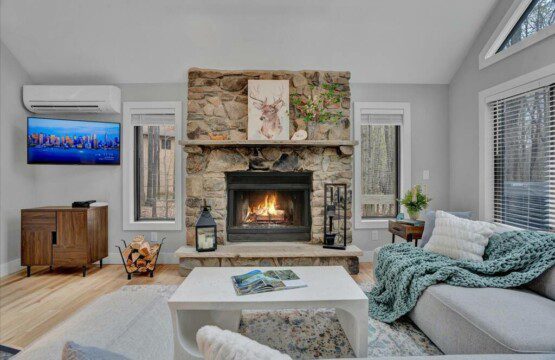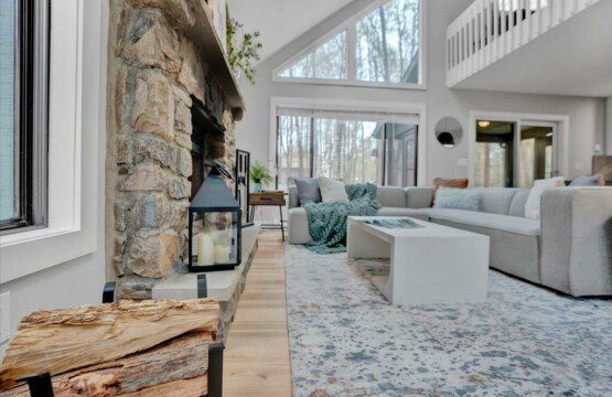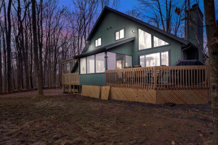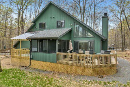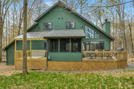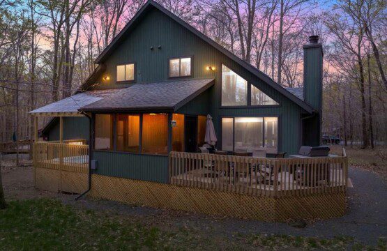 Plan your next getaway at the Evergreen Lodge, one of the finest accommodations in the Poconos! Greeted by a a large green exterior nestled in the trees, you’ll walk into an explosion of rich comfort. Hot tub, wifi, fireplace, what more could you ask for? This pet-friendly vacation rental offers community amenities like pools, sports courts, a recreation center, and more. Big Bass Lake is known for its fish, swimming, boating and kayaking on beautiful water.