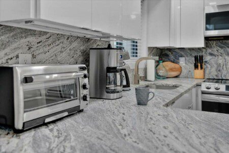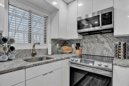GOURMET KITCHEN: Refrigerator, stove/oven, microwave, dishwasher, coffee maker, toaster, cooking basics, spices, dishware/flatware