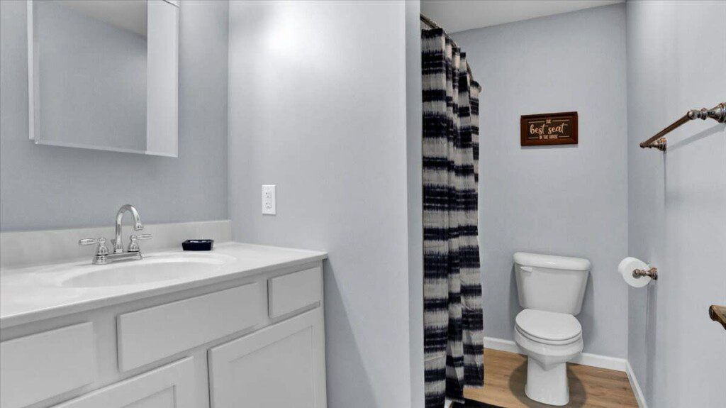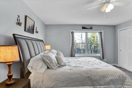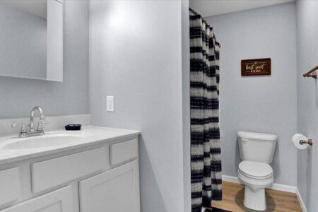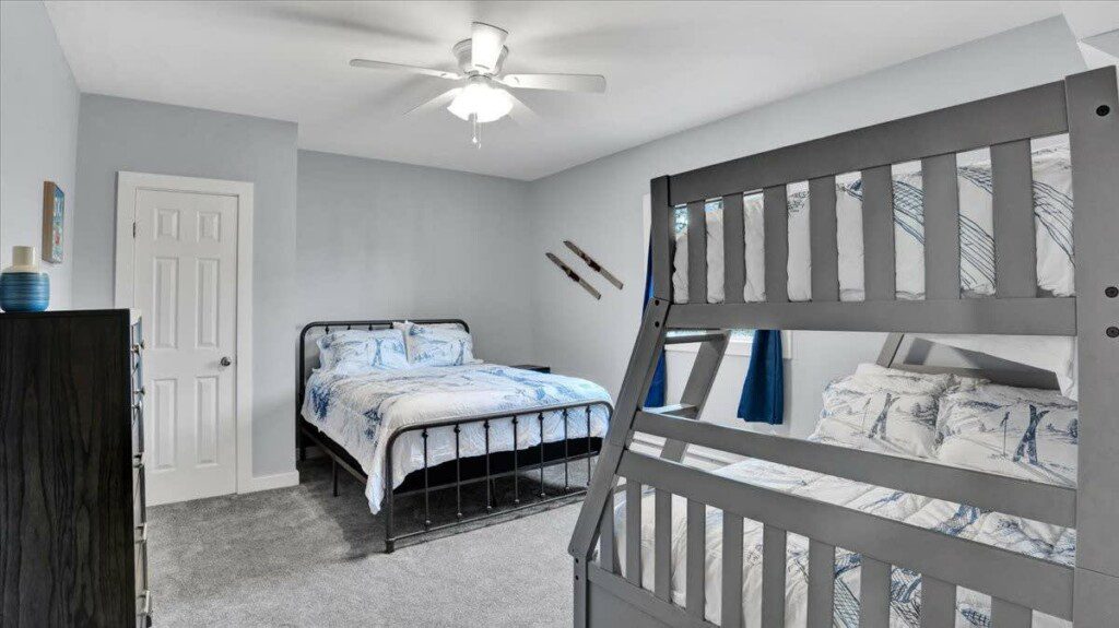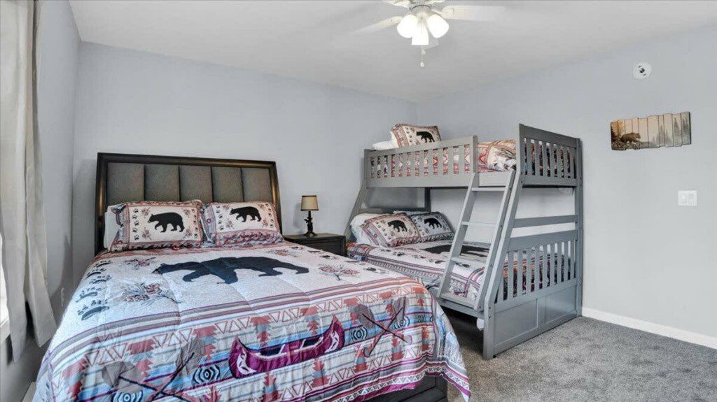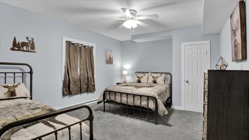 There’s two bedrooms on each side of the lower level, each steps away from one of two full baths.