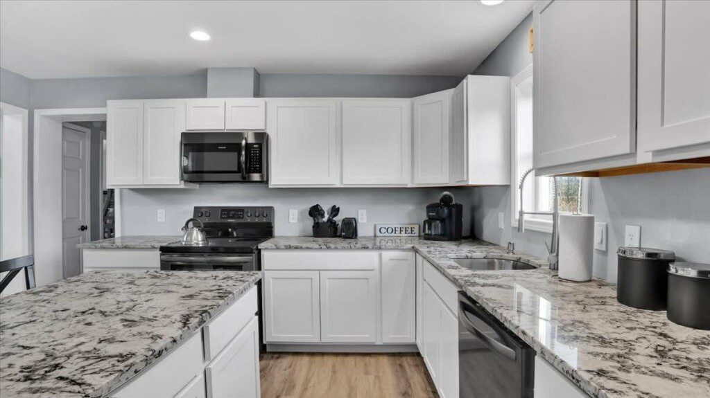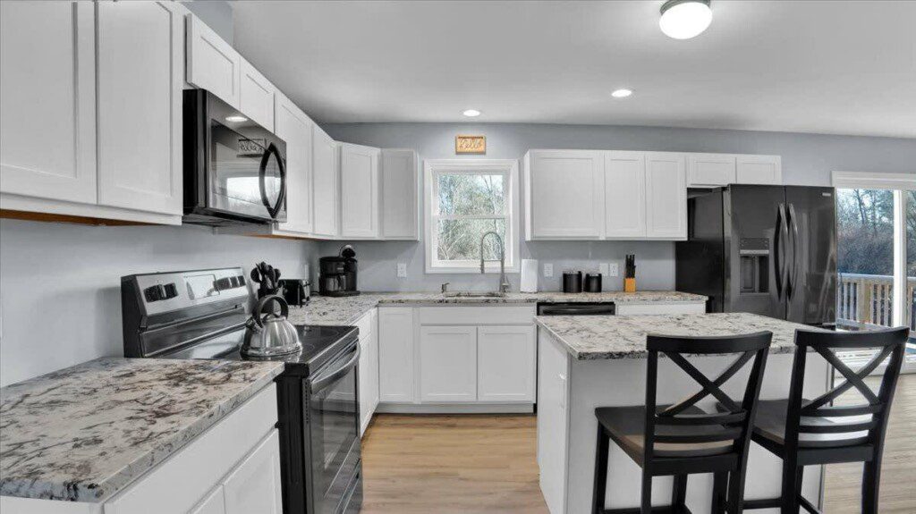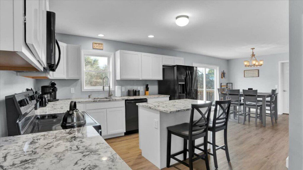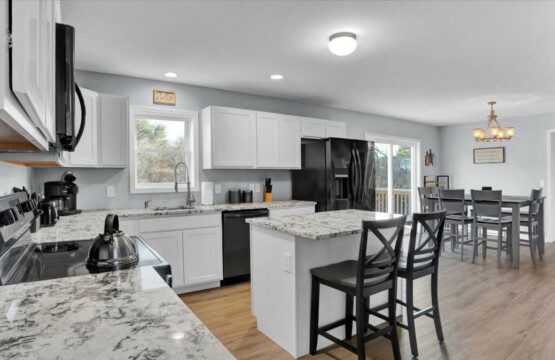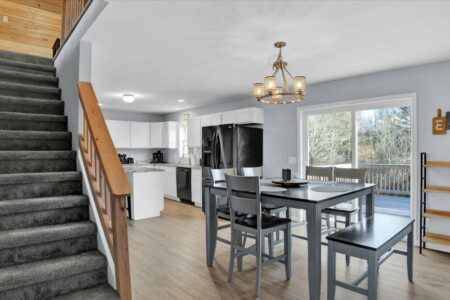 The kitchen is fully stocked with everything you could need for your group’s trip, and a second dining setting for 6.