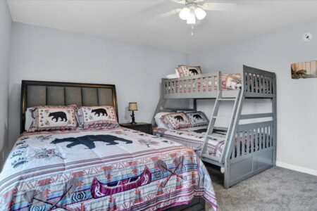 You have access to the entire chalet. The home is in a quaint, ungated community with 32 acre lake. Its a 2 minute walk to the beachy lake and fishing dock. The lake is stocked.