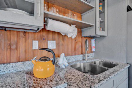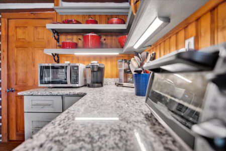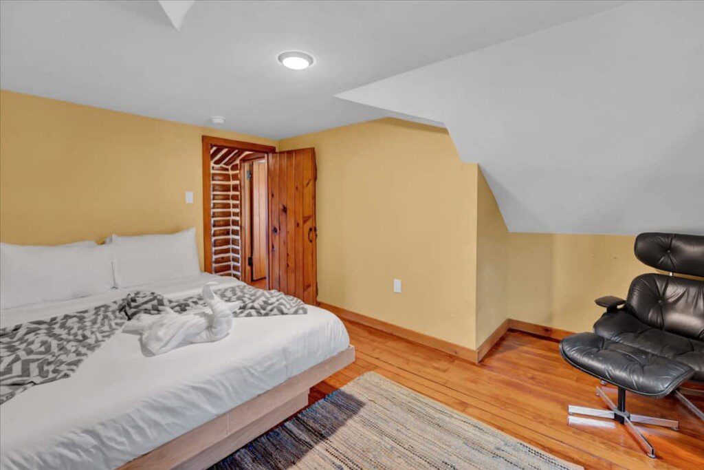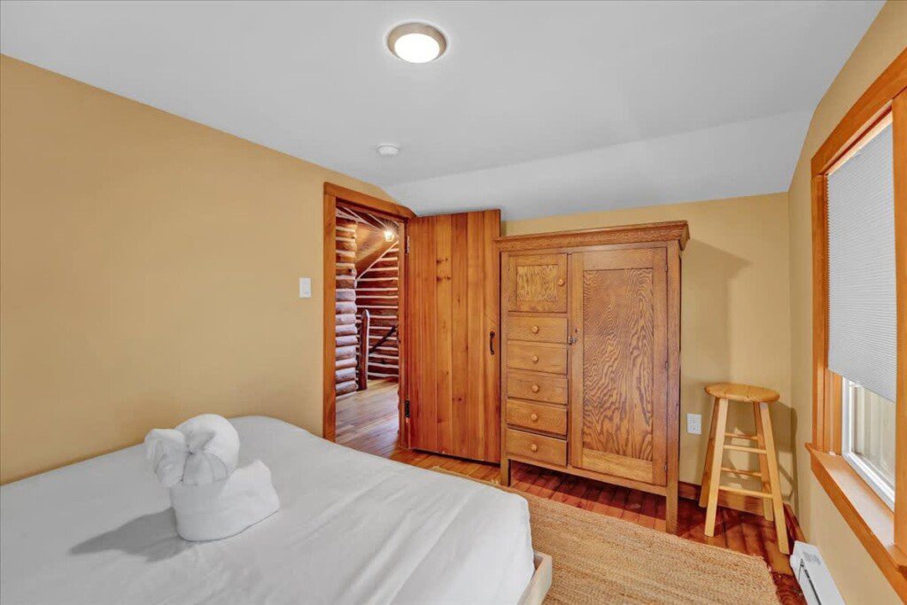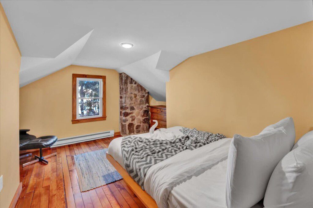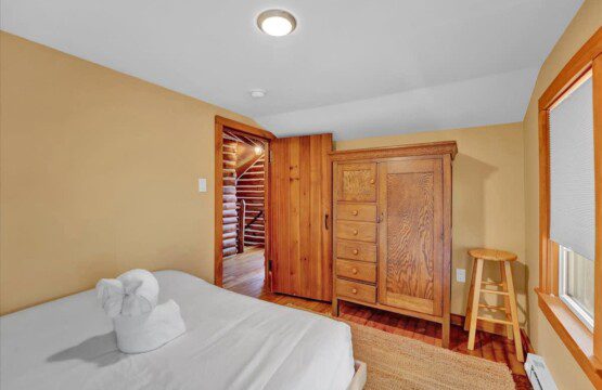 Enjoy the spacious porch to watch the sunset over the lake, or opt for an evening watching the stars by the fire. Take in the high ceilings with original wood throughout the whole house. There is plenty of room for the whole family in this spacious cabin with three cozy bedrooms, a master, a guest room and a kid’s bedroom. Enjoy a warm evening with your family by the fire with family. Please remember to bring your own firewood.