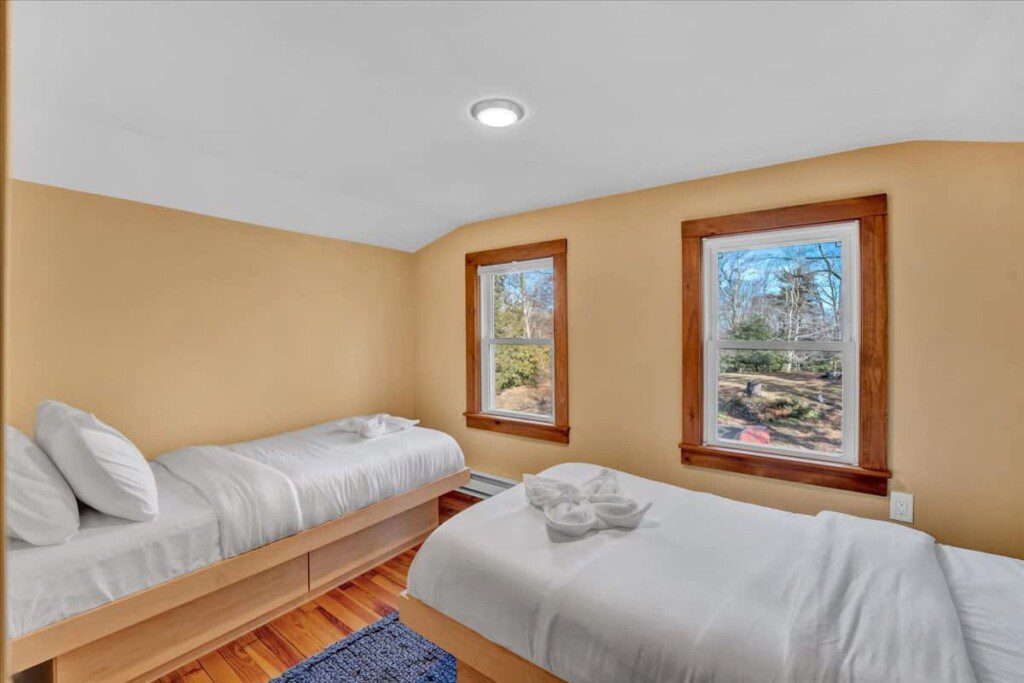 This cabin is nestled right in Lake Harmony, a beautiful lake and well known vacation destination. The roads are very safe to walk on and security patrols them often. There are plenty of ski resorts nearby in the wintertime (Like Jack frost) and a plethora of hiking destinations within a twenty minute drive of this lovely cabin. We are excited to host your whole family on their peaceful Poconos retreat!