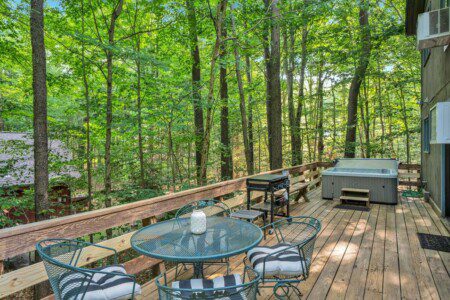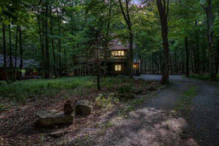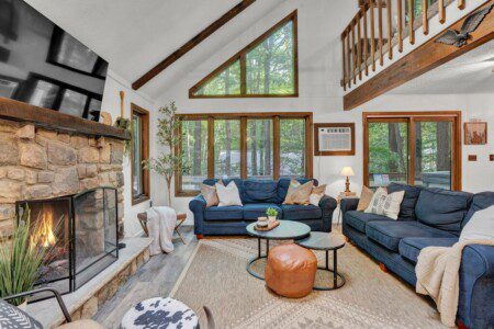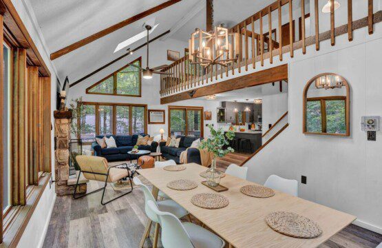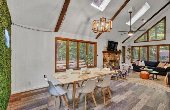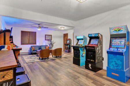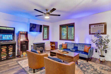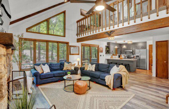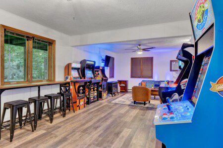 Plan your next getaway at the Lakeview Chalet, one of the finest family accommodations in the Poconos! Drive right along the lake as you pull up to the chalet, where you’re greeted by the hot tub on the deck, sound of 9 featured arcade games, wifi, (fireplace not available), what more could you ask for? This pet-friendly vacation rental offers community amenities like pools, sports courts, a recreation center, and more. Big Bass Lake is known for its fish, swimming, boating and kayaking on beautiful water.