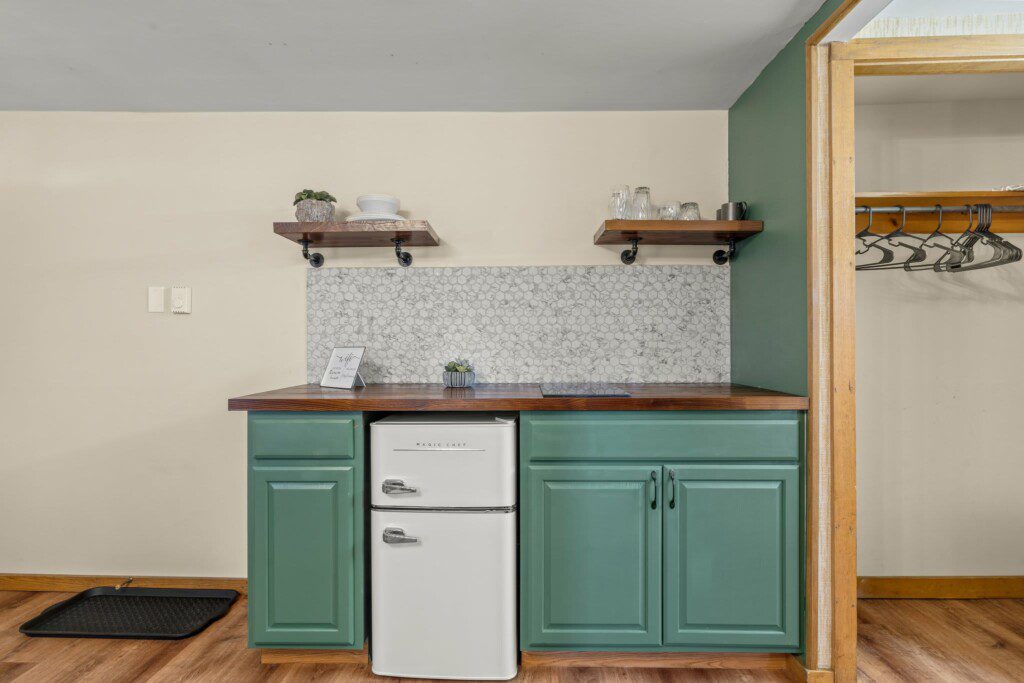The brand new kitchenette is well appointed with a deep sink and plenty of space to prepare a meal