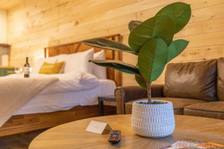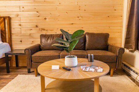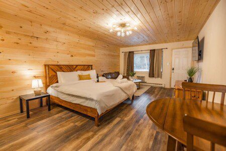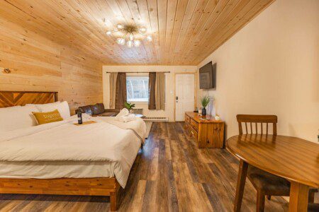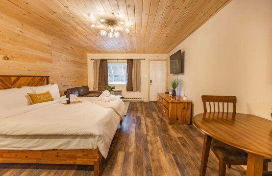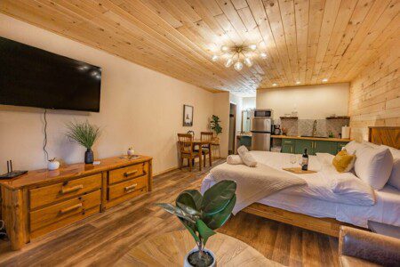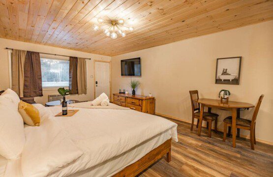 Have a relaxing stay in this charming cabin themed unit with modern amenities and tasteful décor, perfect to settle into after a hike, winery visit, or brewery tour. Nestle up in on a snowy day as you watch the flakes fall gentle onto the pine trees around you.