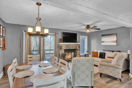 Escape to the Poconos with your family and unwind in this fully updated 2-bed, 1.5-bath townhome, perfect for a party of 6. Nestled in the heart of the mountains, this retreat offers proximity to all Pocono attractions and is steps away from the excitement of Jack Frost National Golf and Jack Frost Ski Area.
