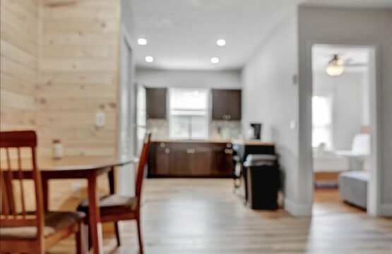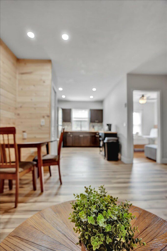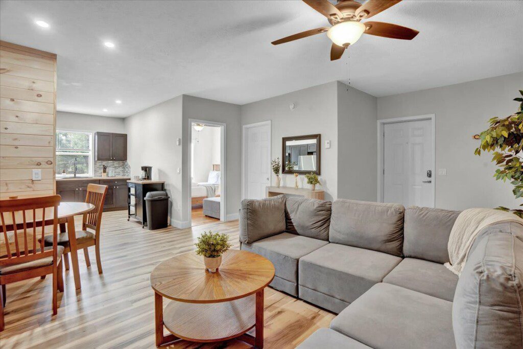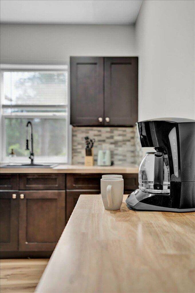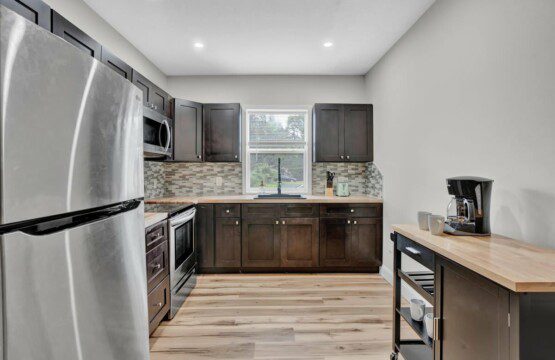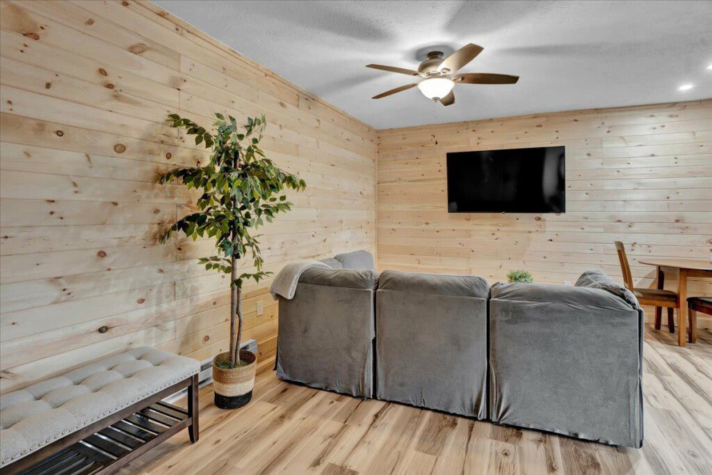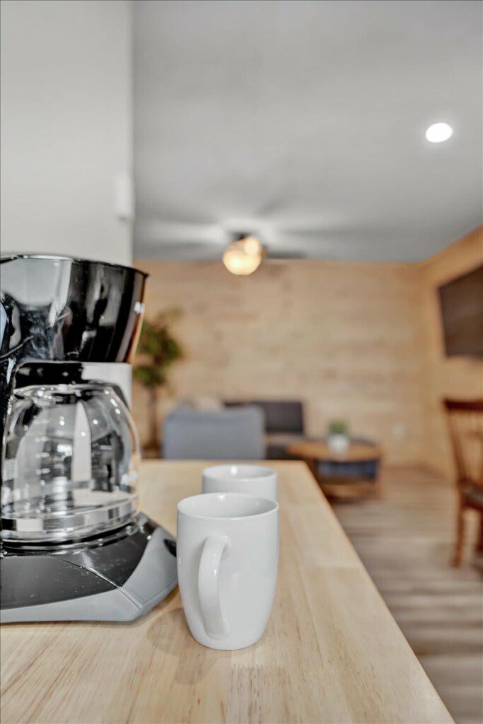 Have a relaxing stay in this charming cabin themed unit with modern amenities and tasteful décor, perfect for a Summer homebase or to nestle up in on a snowy day as you watch the flakes fall gentle onto the pine trees around you.