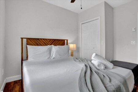 Nestle into your plush queen mattress with cozy sheets and plenty of pillows, grab your favorite snacks and drinks, and enjoy your favorite TV show