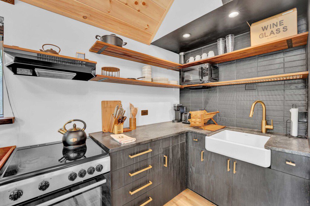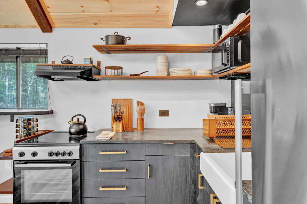 Inside, the cabin features comfortable furnishings, a fully equipped kitchen, and updated essentials — ideal for couples, families, or small groups seeking a break from the hustle.