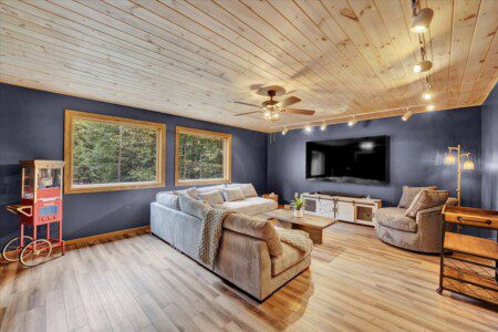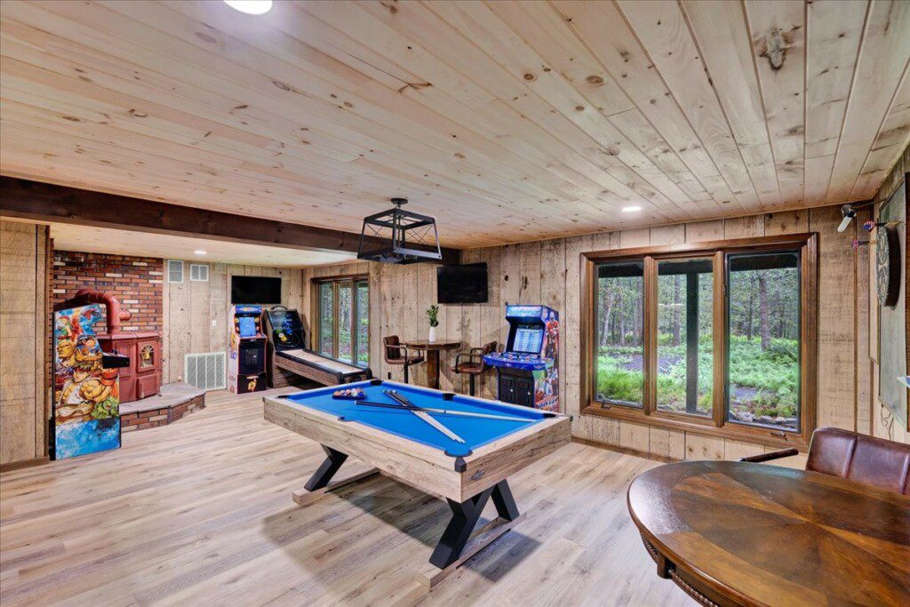 Welcome to your luxurious mountain chalet on a sprawling 2 acres! In gold star community Big Bass Lake – packed with some of the Poconos best kept lakes, amenities, and activities. The chalet itself is packed with things to do such as: