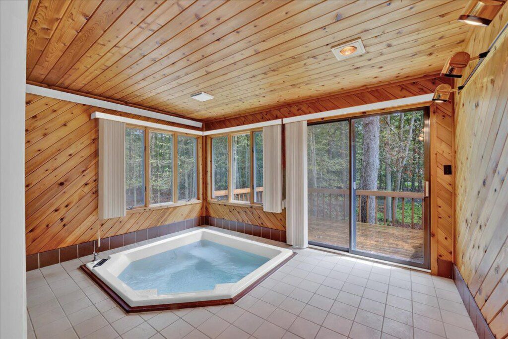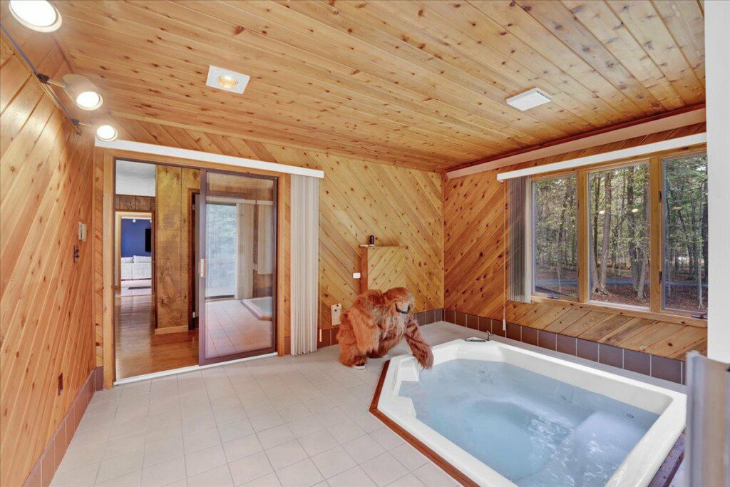 Enjoy our hot tub right next to the gym in the indoor garage recreation area! The hot tub room off the main level is not Guests accessible or where our brand new hot tub sits