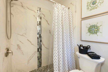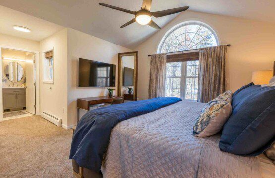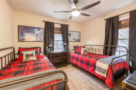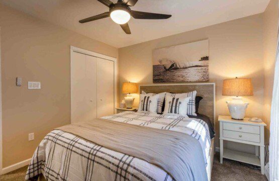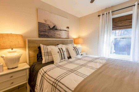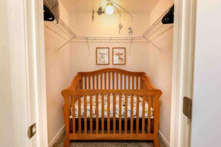 The master bedroom has a king size bed, dedicated work space, and a nursery in the walk-in closet! The secondary bedroom has a queen bed with closet space and an extra comfy mattress. The kids room two twin beds + a trundle and a smart TV for the kids to enjoy.